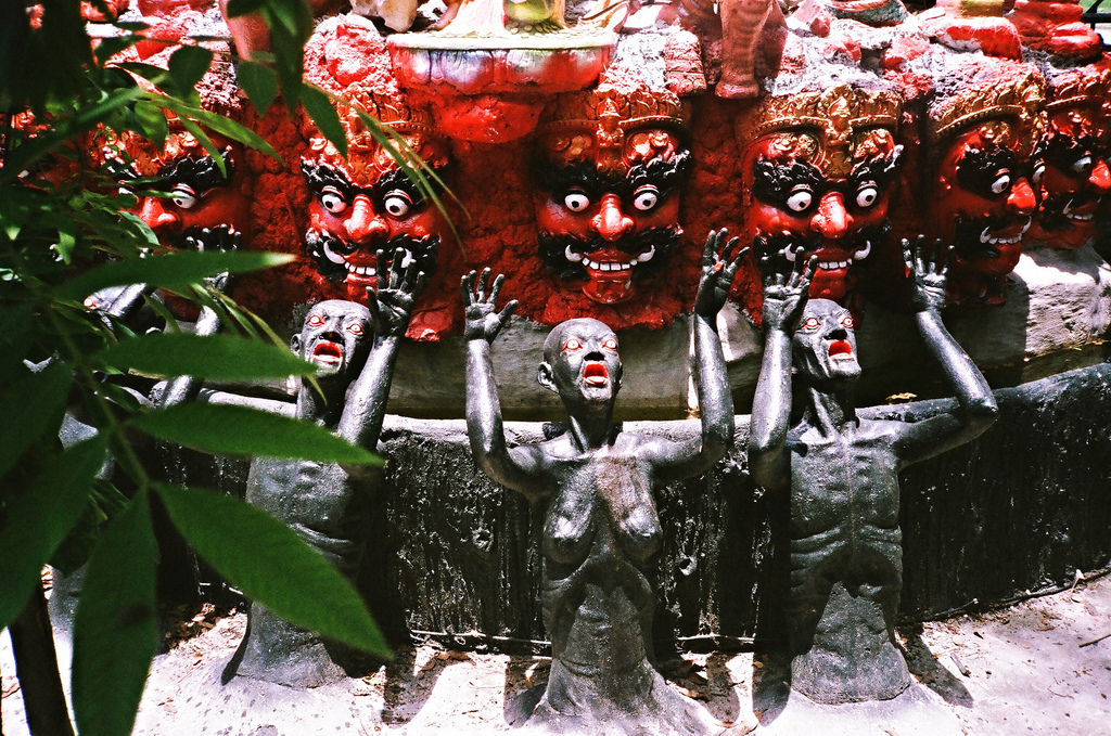My camera quit on me after only a single day of use in Chiang Mai. No replacement was found and so for the most part all I have to show of Thailand (in 35mm) is a damn Hell World, which by the way is not at all related to or located near Wat Phra That (mentioned below). Though I could have filled pages and pages, from a harrowing nighttime songthaew trip in a thunderstorm to being solicited by child prostitutes in Bangkok, I wrote nothing else but letters on this trip.